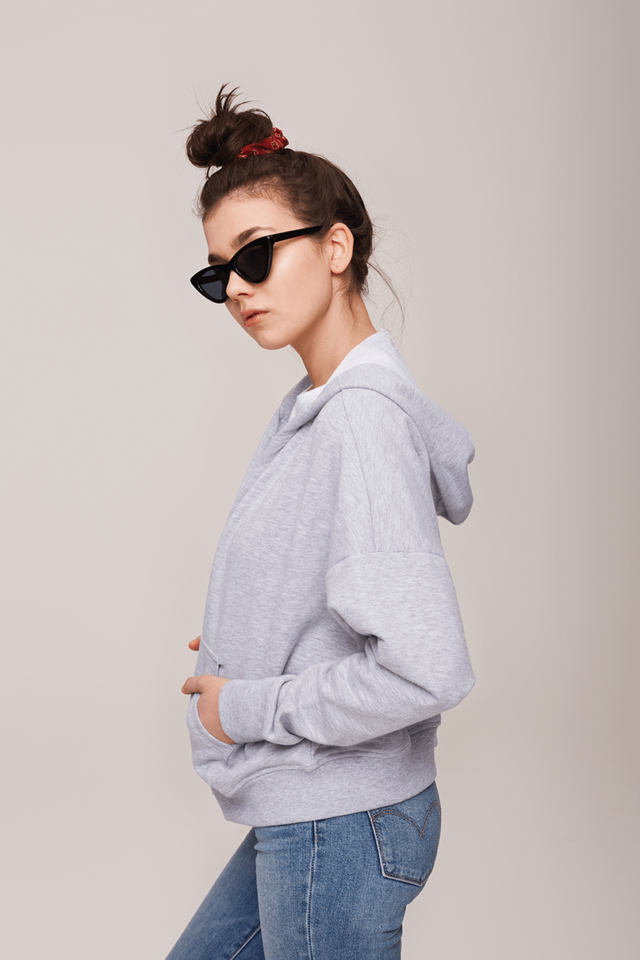 Bluza z kapturem, szeroka, krótsza.